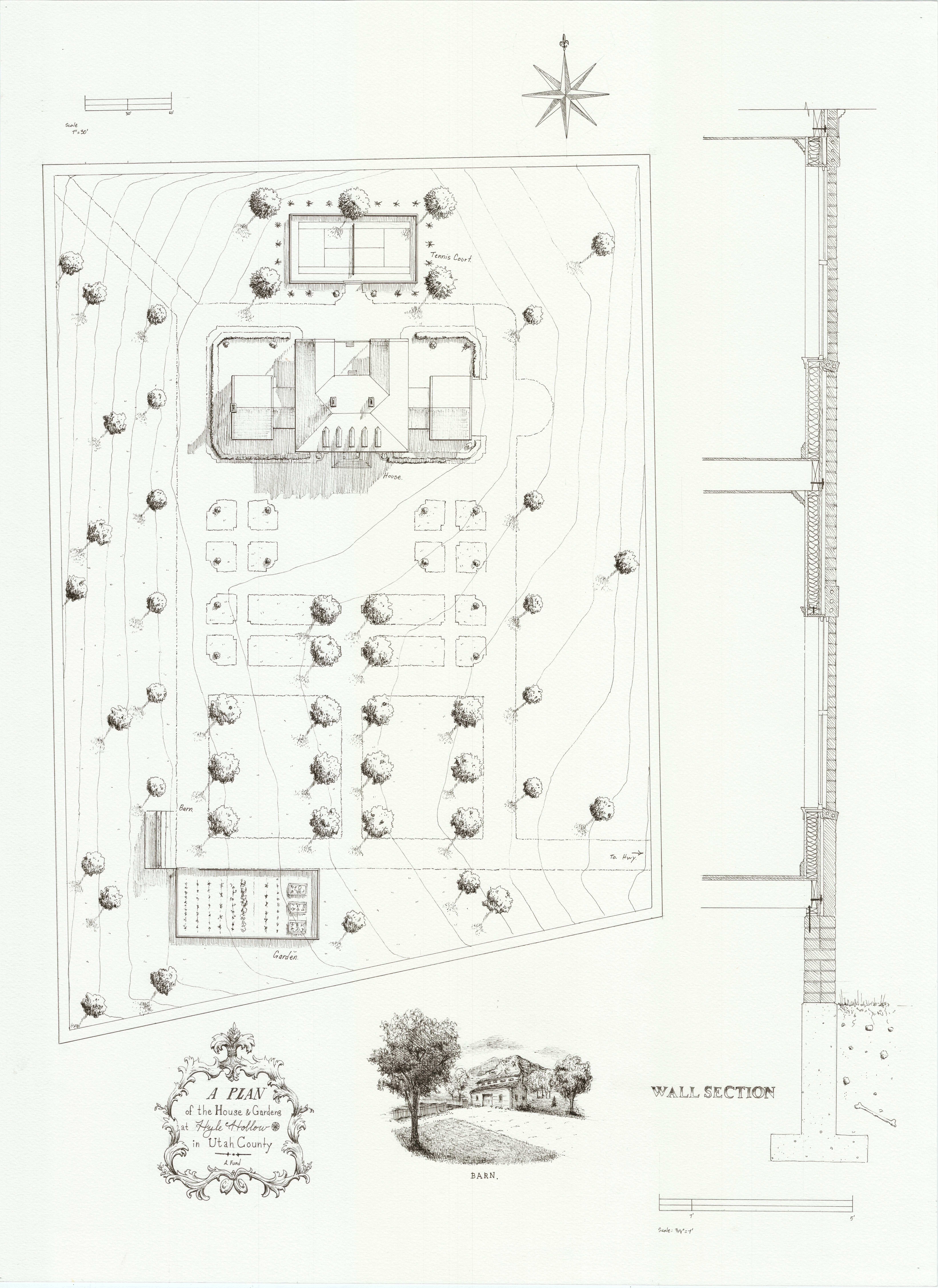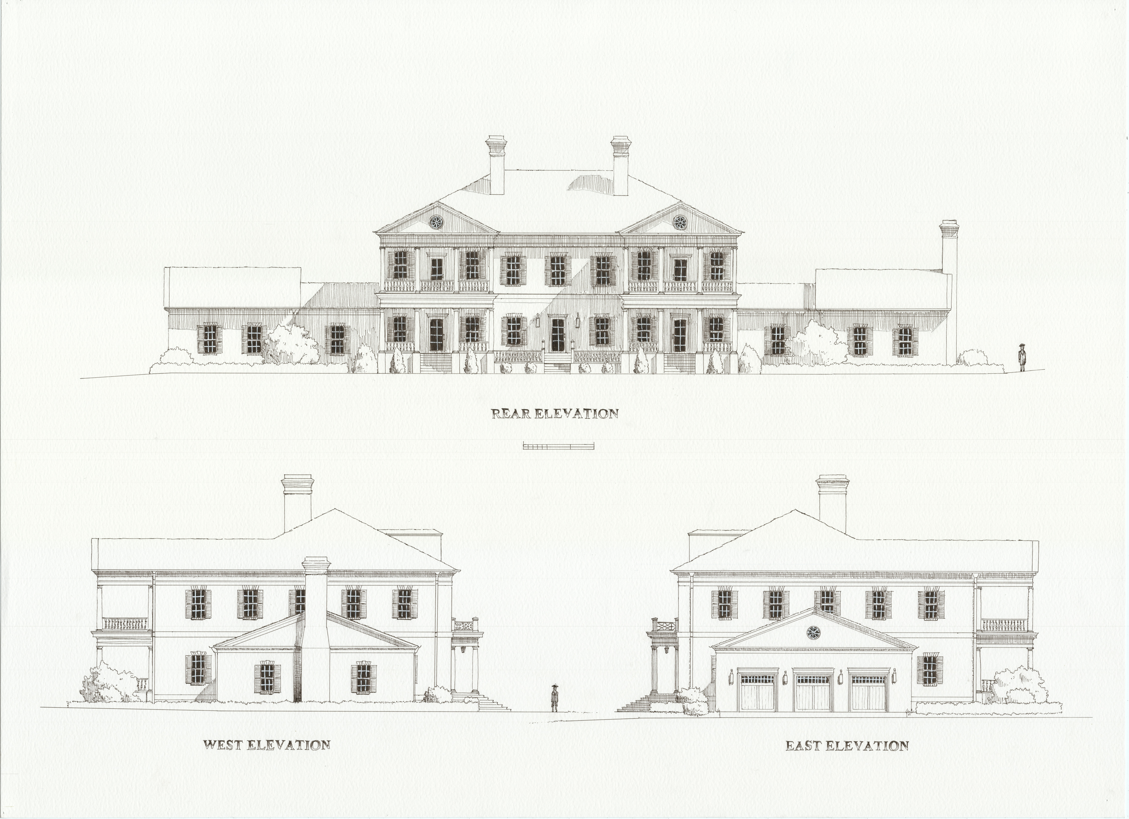 For this project, I designed a grand estate home on a rural property in central Utah. The assignment called for a grand ballroom, banquet hall, music hall, library, and other spaces. The process began with physically measuring the site near Thistle, UT, and going through several stages of design, from schematic to final critique. I modeled the entire estate in Revit, then brought it to life by printing and hand-tracing the design onto large sheets in ink. I also painted a perspective of the front in oil on canvas.